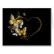 Cadre en forme de coeur d'or, décoré d'or, de bijoux et de papillons blancs sur arrière - plan noir.