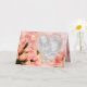 Les tons rose pâle et pêche créent une ambiance romantique avec un fond de pétale de rose et un joli bouquet. Ajoutez une photo spéciale dans la zone du cœur et personnalisez les zones de texte à l'intérieur.