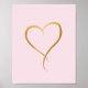 Cœur doré sur fond rose - impression d'art - nurserie - chambre de filles - bureau - décoration