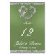 Ce design romantique présente un élégant arrière - plan vert sauge avec des bordures de parties scintillant, un coeur et des espaces réservés pour le numéro de table, les noms du couple et la date de l'événement. Disponible en plusieurs couleurs pour votre thème mariage. (La Parties scintillant est simulée dans l'illustration). Conçu pour se coordonner avec la collection de Mariages romantiques de Scroll Hearts & Parties scintillant. Pour modifier les détails, cliquez sur "Personnaliser". Pour déplacer le texte ou modifier la taille, la police ou la couleur du texte, cliquez sur "Cliquez pour customiser plus loin".