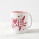 Une tasse chic recouverte de coeurs dessinés à la main, de flèches et du mot "Amour" dans un style minimaliste. Parfait pour les romantiques modernes.