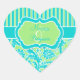 Cœur Sticker en damas rayé bleu, vert et blanc
