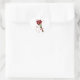 sticker en forme de coeur pour la fête de la Saint Valentin. Bouquet de roses stylisées maintenues par un noeud rouge, halo de petits coeurs roses et blancs.