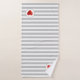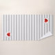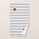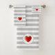 Élégante serviette sertie de beau coeur avec rayures gris argenté et blanc sur l'arrière - plan. Chic et moderne serviette de bain.