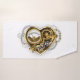 Coeur steampunk mécanique, volumétrique, avec manomètre, acier et or sur arrière - plan blanc. Style Steampunk.