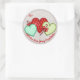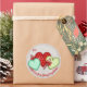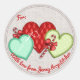 Coeurs rouge, vert et menthe avec couture à la main sur un faux arrière - plan burlap sur ce Noël "fait à la main avec amour" à/de l'autocollant pour un couturier ou pour donner votre liste avec des projets de couture artisanale.