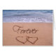 Deux ont entrelacé des coeurs sur une plage sablonneuse avec le forever dans la police de manuscrit. Conception d'amusement pour les couples de mariage de destination.