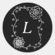 Ajoutez un bel accent avec ces autocollants monogrammes noirs et blancs. Elles sont peintes à la main de deux fleurs blanches, dans des coins diagonaux, avec des feuilles en forme de coeur sur les tiges qui font la bordure. La première est facilement customisée sur le formulaire modèle. Il y a des articles correspondants dans ce magasin. Merci pour faire du shopping à CherylsArt sur Zazzle.