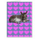 Joli petit poulain d'âne couleur chocolat dormant sur un arrière - plan bleu aux coeurs roses. A l'intérieur de la carte a deux coeurs roses. La carte est vide pour votre propre message.