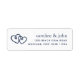 Les étiquettes d'adresse de retour chic côtier en bleu marine et blanc classique comportent les détails de votre adresse de retour alignés à droite, accentués par une paire d'illustrations de cordon nautique noué en marine.