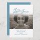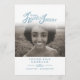 Programme funéraire ordre de service double face simple bleu gris et blanc dans nos coeurs éternellement programme funéraire. Programme simple mais élégant, remplacez les supports de texte et de photo par vos propres trois photos et informations spéciales. La typographie originale et dans nos coeurs éternellement graphique et design par Sarah Trett. www.sarahtrett.com pour www.mylittleeden.com (Crédit photo de Guilherme Stecanella sur la photo modèle Unsplash est juste une image d'espace réservé à remplacer).