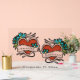 Ce panneau de mariage personnalisé présente des graphiques de style tatouage avec des coeurs de style rétro en rouge avec des accents de fleurs bleues qui sont prêts à être personnalisés avec le nom de la mariée et du marié. Ce graphique tatoué à la main libre a une allure rétro. Le texte et les graphiques sont mis contre un arrière - plan acrylique clair.