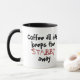 An apple a day may keep the doctor away, but COFFEE all day keeps the STABBY away! And that is WAY more important!! Warn your friends, family and co-workers that their survival and perhaps the survival of the entire species depends on keeping your cup full at all times!! A fun gift for your favourite coffee lover or an hilarious mug for yourself!