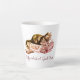 A perfect latte mug for a bookworm. Coffee and a good read features a cat lying on a stack of books. Curl up with your cat and enjoy a good read!