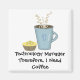 A fun design for managers, just switch the type of manager to what works for you. A blue coffee mug with steaming hot coffee and a lemon muffin.
