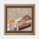 Who doesn’t love chocolate in any form? Here we have a steaming cup of coffee with a yummy slice of marbled chocolate cheesecake. Set in a dark brown frame on a background of cocoa steam with a scroll embellishment. Stylized digital design for you to savour.
