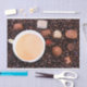 This photography still life of coffee beans, a cup of coffee, and chocolate on tissue paper creates a cozy, textured aesthetic that’s perfect for multiple uses. The tissue paper can be repurposed for gift wrapping, ideal for presents aimed at coffee lovers, or used in café decor, bringing warmth and charm when framed or displayed. It's also great for product packaging, particularly for small coffee roasters or chocolatiers looking to add a personal, inviting touch to their brand.