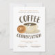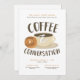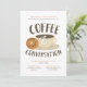 Coffee and conversation go perfectly together. This invitation features a delicious bagel and a coffee cup