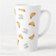 This coffee and croissant fancy pattern design is featured on gentle soft background.