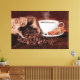 Coffee Aroma Watercolor Print Wall Art Coffee Aroma, A Hessian Bag With Coffee Beans and A Delicious Cup Of Coffee With The Aroma of Cinnamon Sticks On The Cup, you can just smell it first thing in the morning, yum. Original photograph I used for reference: Larisa Koshkina - publicdomainpictures.net/view-image.php?image=60171&picture=coffee-and-cinnamon