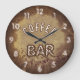 This rustic Coffee Bar wall clock features a warm coffee-inspired design with a simulated burlap texture and natural coffee stain effects. The background mimics coffee splashes on fabric, creating a cozy and authentic café atmosphere.