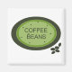 A cool green and brown coffee bean sign. A few loose coffee beans on the side... perfect for a coffee drinker