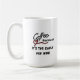 Coffee Because It's Too Early for Wine on a coffee mug. Great conversation piece while you are enjoying a little coffee with friends.