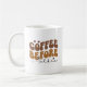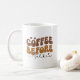 This funny coffee mug has the text "Coffee Before Talkie" in a brown retro font style and is a perfect custom gift for the coffee lover in your life!