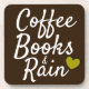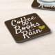 These fun coasters make the best housewarming gift idea for a book lover/coffee lover! They each say 'Coffee Books & Rain' printed in big white cursive letters on a coffee brown colour background next to a cute gold heart! (Is the coffee ready?)