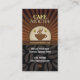 Coffee is the name of the game on this business card that uses café colours and imagery. A badge displaying a steaming cup of coffee stands out against a beige circle punctuated by stars. Brown beams burst out from behind the badge with business information printing below in a black panel watermarked with coffee bean images. The reverse repeats a similar coffee badge with extra information printing to the left. Customize the loyalty section to suit your needs. Available with matching products.