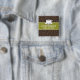 Custom employee name button or pin for coffee shops. Green, espresso brown and white colours. Image features a coffee mug with a background pattern of whole coffee beans. Personalize with the business name and name of the staff member. The olive green background colour can be changed to a different colour with the Customize It option (Customize It, then select Edit Background).