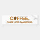 Coffee. Cause Life's Dangerous, fun life quote Bumper Sticker