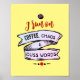 Funny typography style poster features hand drawn ribbon with "I run on coffee, chaos and cuss words" text on light yellow background.
