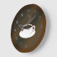 Coffee Cup © Sunny Mars Designs. Cool custom chocolate or brown large round 'coffee time' round wall clock with a modern, trendy, stylish, cute, stylized graphic illustration icon design of a steaming mug or cup of coffee and saucer.