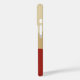 Beige coffee cup on a dark red table. Custom text.