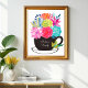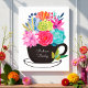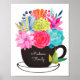 Coffee Tea Cup Art Poster Wall Art with colorful pink, red, green, orange, purple, green, watercolor flowers. You can change the text on the black cup using personalize this template option. Makes a wonderful addition to kitchen, dining room, living room, porch or any other space in your decor.