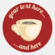 Beige cup of coffee. Custom background colour. Two custom text fields on circle.