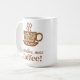 Mug in a stylized coffee cup is filled with a rich coffee bean pattern and topped with rising steam. Below, the phrase “less talkee, more Coffee!” adds a humourous, relatable touch perfect for coffee lovers.