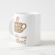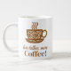 Giant Mug in a stylized coffee cup is filled with a rich coffee bean pattern and topped with rising steam. Below, the phrase “less talkee, more Coffee!” adds a humourous, relatable touch perfect for coffee lovers.