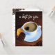 A "have a break" illustration with a white cup of coffee - the coffee with heart shape made of foam, 2 pieces of chocolate zwieback rusk and a few coffee beans on a wooden background.
