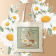 Cute Coffee Cup, White & Yellow Daisies with a Textured Green Background.
