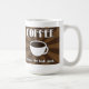 A vector graphic of a coffee cup filled with coffee is in the centre with the saying: "COFFEE - it does the body good." The background is a brown two-toned sunburst.