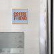 Declare a love for coffee on your fridge! Or your file cabinet! Or . . . You get the idea! A great gift for coffee/caffeine lovers, as well as a great office gift! "Coffee is my friend" text with clever colouring, browns and blues.
