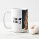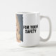 A Personalized picture on a coffee mug with the saying : I drink coffee for your safety. It is a funny saying to add any picture to.