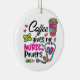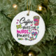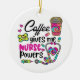 Infirmière couleur de style rétro ornement en céramique avec une tasse de café avec des fournitures médicales et texte qui dit Café me donne des pouvoirs d'infirmière, parfait pour l'infirmière qui aime son café!