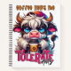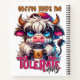 A funny, sarcastic, and colourful design showcases an adorable highland cow clutching a takeout coffee cup. The cup features a coffee bean and a black lid. The cow, with its big blue eyes and black-and-white fur, adds charm to the design. The vibrant text reads, "Coffee helps me tolerate idiots." This design is available on various products, making it a perfect gift for coffee lovers.