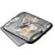 Laptop sleeve featuring a coffee on a metallic background design with building blocks. For a good start of the day!