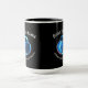 This combo mug is great for any coffee lover. It features my digitally altered close-up photograph of a coffee filled blue cup and saucer with coffee beans over a black background. The arched white text above the photograph reads "Official Team Member". The bowed white text below the cup and saucer photograph reads "Coffee Consumption Squad". Fill in the template fields to change the text on both sides or click customize to select a typeface style, size, and colour you like.