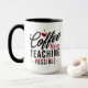 This is the perfect mug for a teacher who also love drinking coffee. It is a fun design in black and red with the words "Coffee Makes Teaching Possible" and coffee cup. This would make a great gift for teacher appreciation, back to school, for a teacher's birthday, end of year gift or Christmas gift. The mug can also be personalized by changing the name which appears on the front of the mug.