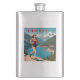 The product is a good size and came exactly as it was pictured. The lid is not attached to the flask, which could be dangerous on drunken nights... The print came out surprisingly well and looks very sharp. Would definitely recommend.
